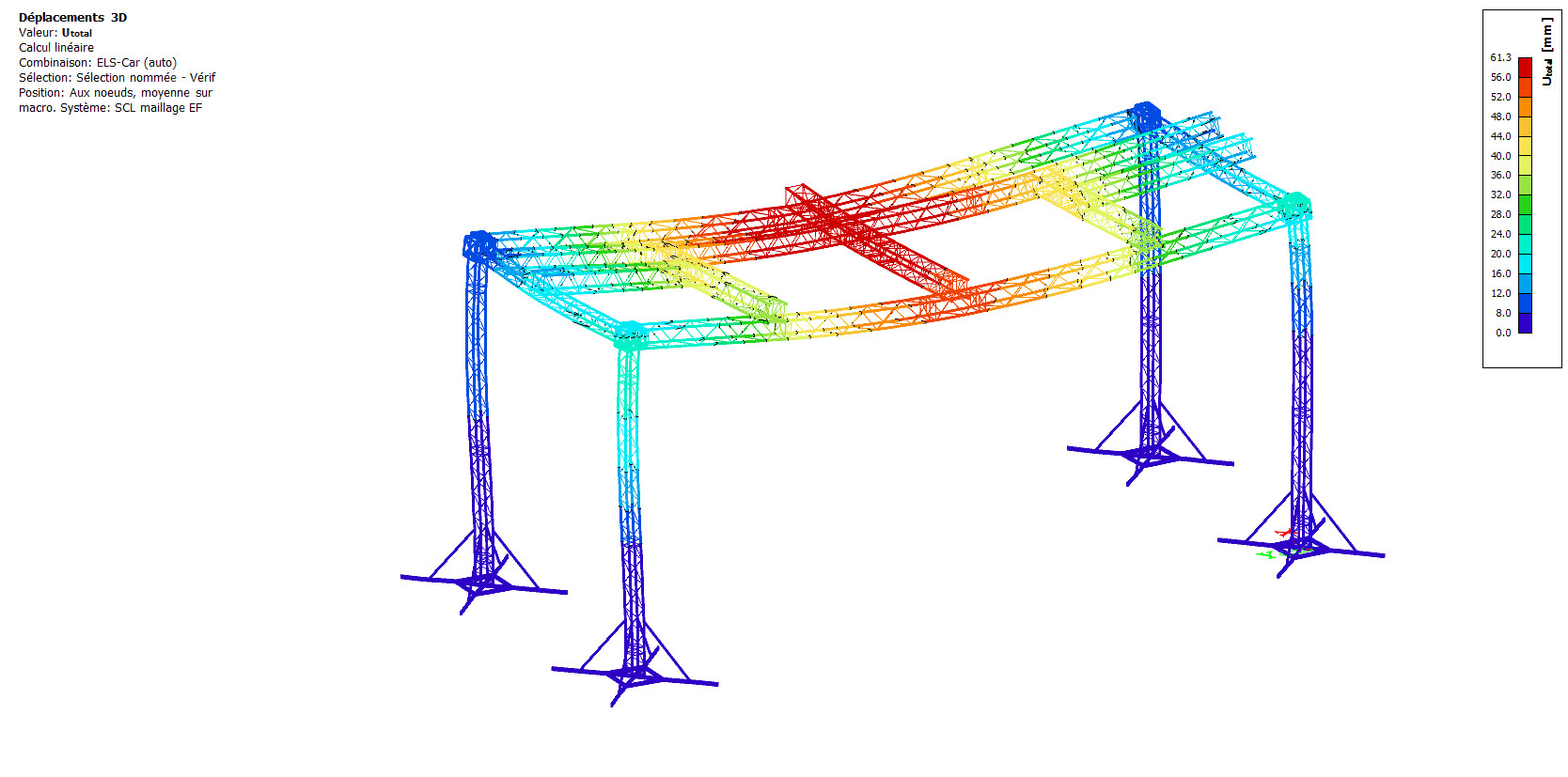 Pour les barres présentant des contraintes proches des limites, nous avons formulé des préconisations de renforcements adaptées, dont l'ajout de ponts supplémentaires et de câbles de tensions. Cela permet de sécuriser la structure tout en optimisant les coûts et la facilité de montage.